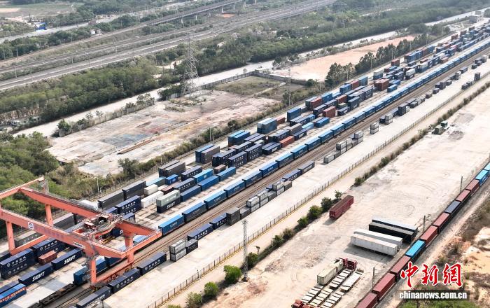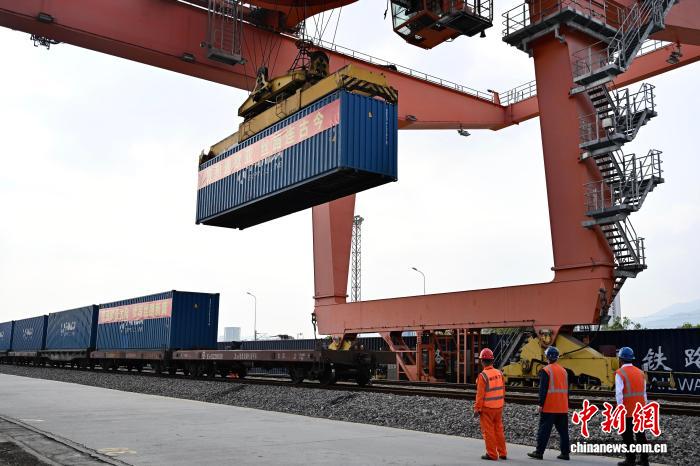 今日海闭闭员正在厦门邦际物淌港查抄拆趁中欧班列出心的货色。中新社记者 弛斌 摄
