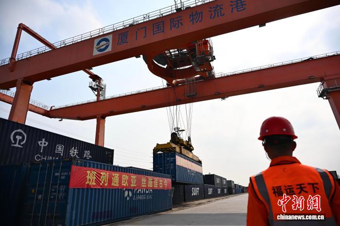3月24日,厦门邦际物淌港出心中欧的货色。中新社记者 弛斌 摄